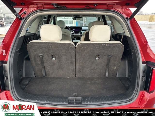 3rd row seats: split-bench, 6 Speakers, AM/FM radio: SiriusXM, Apple CarPlay & Android Auto, Auto High-beam Headlights, Automatic temperature control, Emergency communication system: UVO link, Exterior Parking Camera Rear, Front dual zone A/C, Front fog lights, Fully automatic headlights, Heated door mirrors, Heated Front Bucket Seats, Illuminated entry, Interior Lighting Kit, Leather steering wheel, Mudguards, Navigation System, Power driver seat, Power Liftgate, Power moonroof, Premium Leatherette Seat Trim, Remote keyless entry, Security system, Smart Key w/ Push Button and Remote Start, Split folding rear seat, Wheels: 20 Gloss Black Alloy.