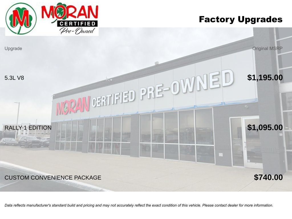 3-Passenger Full-Width Folding Rear Bench Seat, 40/20/40 Front Split Bench Seat, 6 Speaker Audio System, Apple CarPlay/Android Auto, Auxiliary External Transmission Oil Cooler, Bluetooth® For Phone, Custom Convenience Package, Deep-Tinted Glass, Driver Information Center, Electric Rear-Window Defogger, Front & Rear Black Bow Tie, Front Frame-Mounted Black Recovery Hooks, Fully automatic headlights, Heated door mirrors, Heavy Duty Suspension, High-Intensity Discharge Headlights, Illuminated entry, Preferred Equipment Group 1CX, Premium audio system: Chevrolet MyLink, Radio: AM/FM w/7 Diagonal Color Touch Screen, Rally 1 Edition, Rear Vision Camera, Remote Keyless Entry, Remote Locking Tailgate, Spray-On Pickup Box Bed Liner, Wheels: 20 x 9 Black-Painted Aluminum.