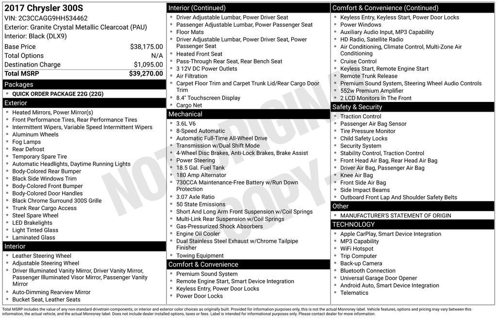 Granite Crystal Metallic Clearcoat 2017 Chrysler 300 S AWD 3.6L V6 24V VVT 8-Speed Automatic