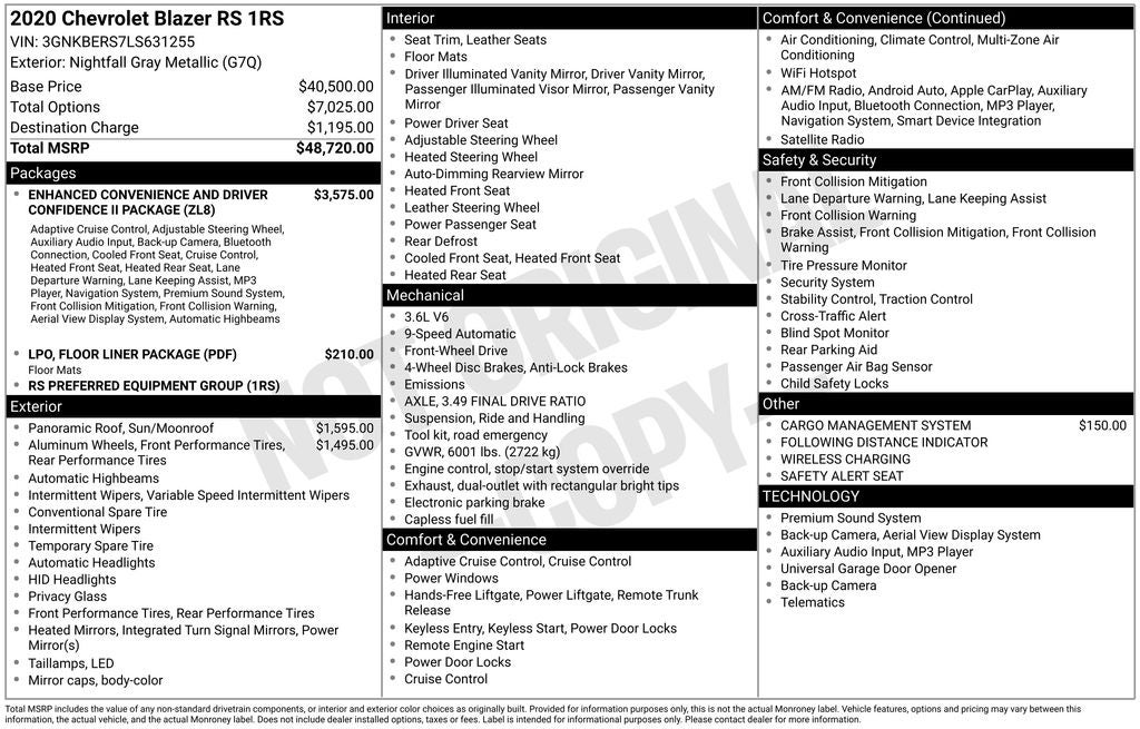 Nightfall Gray Metallic 2020 Chevrolet Blazer RS FWD 3.6L V6 SIDI DOHC VVT 9-Speed Automatic