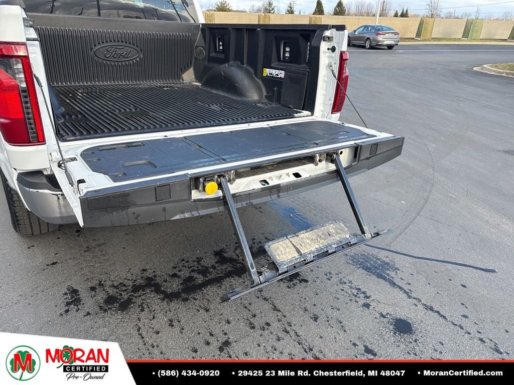 4 Pickup Box Tie-Down Plates, 400W Cab & Bed Outlets, 6 Speakers, 6 Angular Bright Anodized Step Bar, AM/FM radio: SiriusXM with 360L, Bed Utility Package, Black Painted Grille w/Chrome Center Bar, Chrome Door & Tailgate Handles, Chrome Single-Tip Exhaust, Cloth 40/20/40 Front Seat, Cloth 40/20/40 Front Seat w/Console, Console Worksurface, Dual-Zone Electronic Automatic Temperature Control, Emergency communication system: SYNC 4 911 Assist, Equipment Group 301A Standard, Front fog lights, Fully automatic headlights, Integrated Trailer Brake Controller, Internet access capable: FordPass Connect 5G, LED Box Lighting, Mobile Office Package, Partitioned Lockable Rear Storage, Radio: AM/FM Stereo w/SiriusXM 360L, Rear Parking Sensors, Remote keyless entry, Security system, Split folding rear seat, SYNC 4 w/Enhanced Voice Recognition, Tailgate Step w/Tailgate Work Surface, Tow/Haul Package, Wheels: 18 Chrome-Like PVD, Wrapped Steering Wheel.